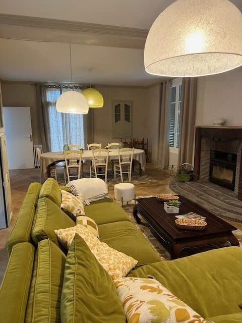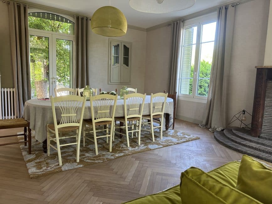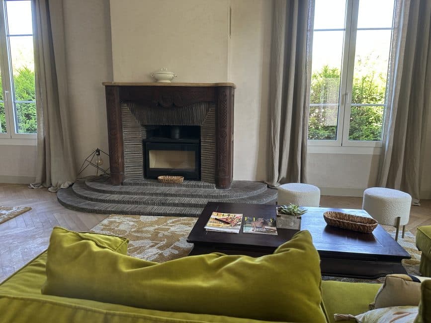Grande cuisine de 18m² avec accès direct à la terrasse, séjour de 48 m² avec cheminée coin salon …