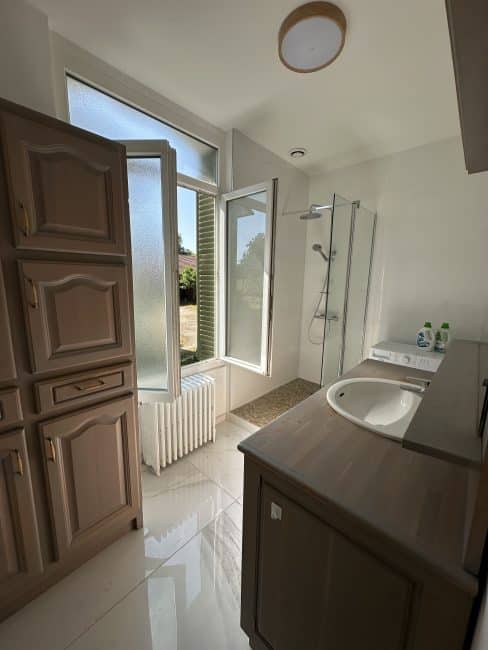 • Salle d’eau avec douche à l’italienne, lavabo, lave-linge