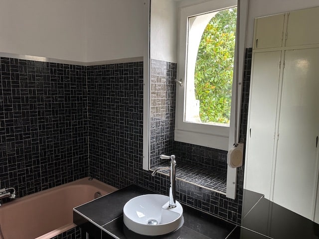 • Cuisine 18m² avec vaisselle et ustensiles, cuisinière plaque induction et four électrique réfrigérateur/congélateur, micro-ondes, cafetière électrique (filtre), bouilloire, grille-pain, lave-vaisselle et nespresso.